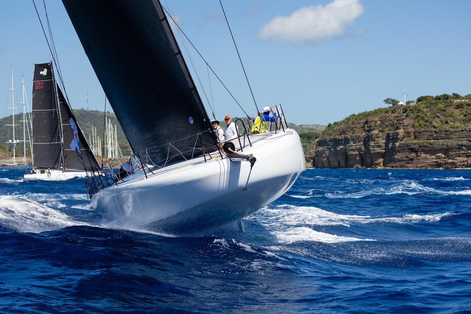 From La Désirade toward Barbuda, Ino Noir found strong downwind pace. “We were flying 18 to 20 knots,” Neville said. “However, the breeze eased more than forecast and we got tangled in fishing gear near Barbuda costing time.”